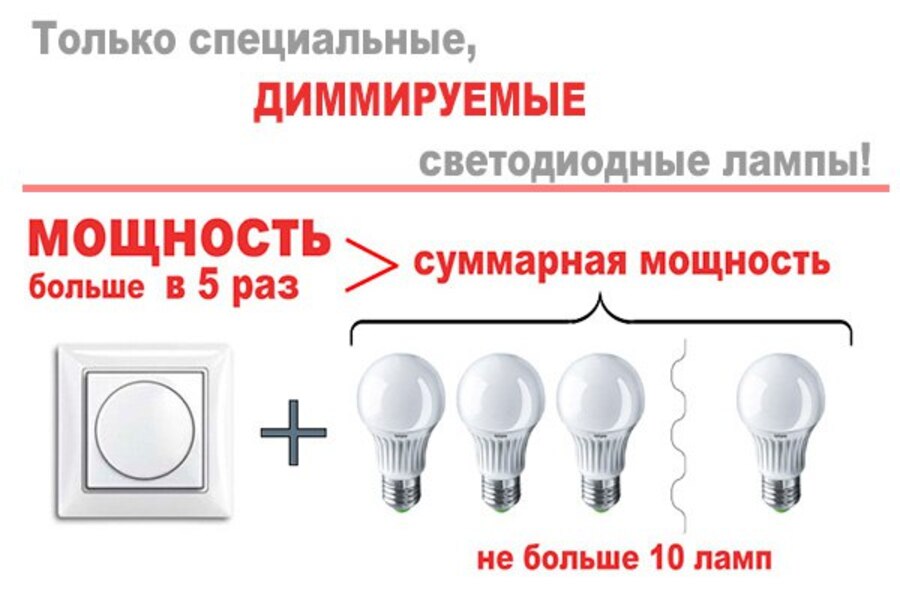 Помните, что безопасная эксплуатация диммируемых ламп может быть обеспечена только путем приобретения качественных приборов, а также полной совместимости их с регулятором.