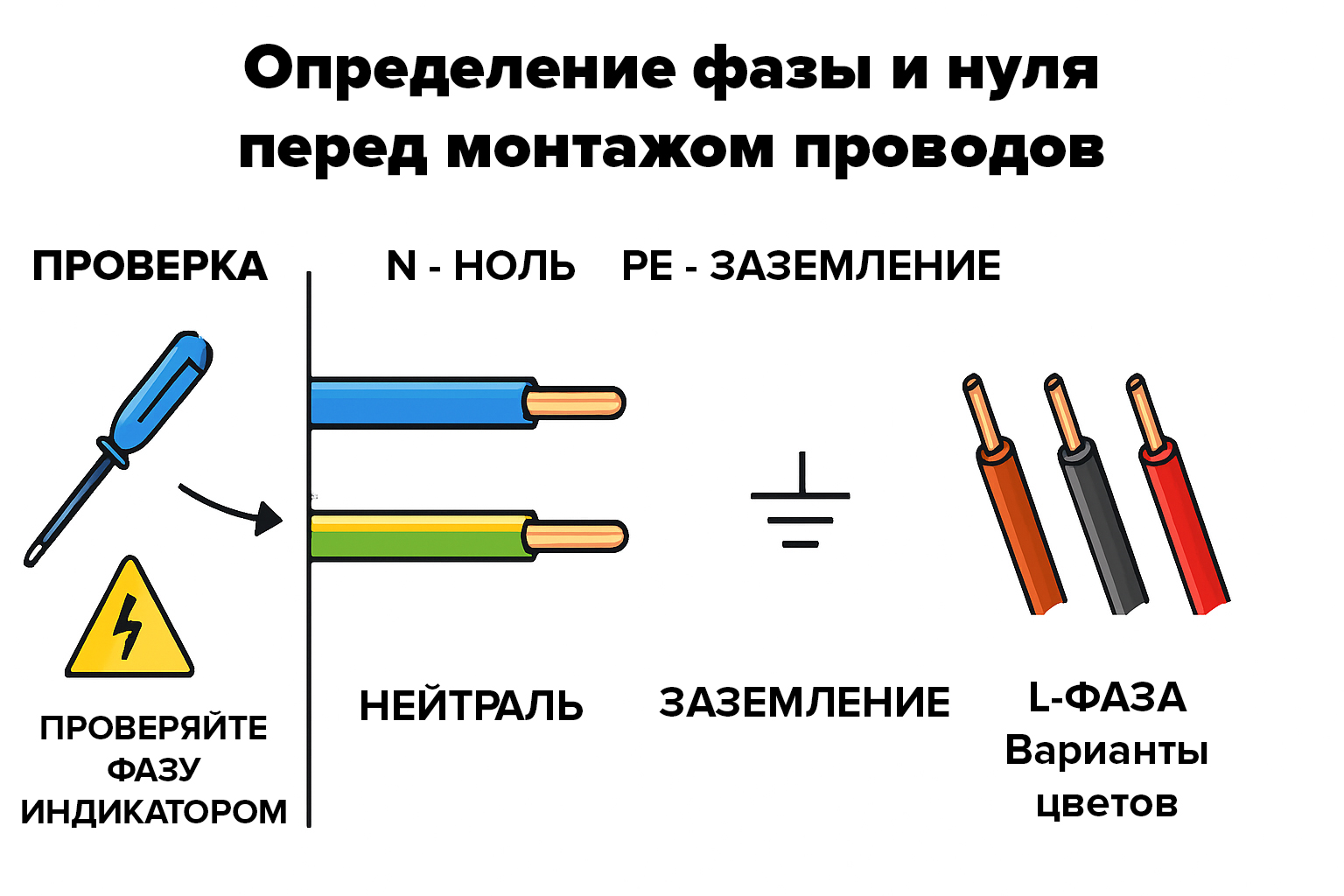 • ноль (все провода одного цвета, чаще синего);