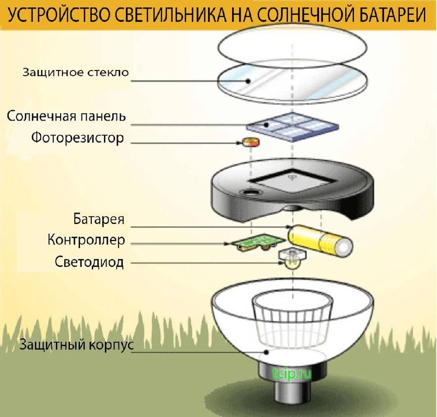 Схема и принцип работы светильников от солнечной батареи