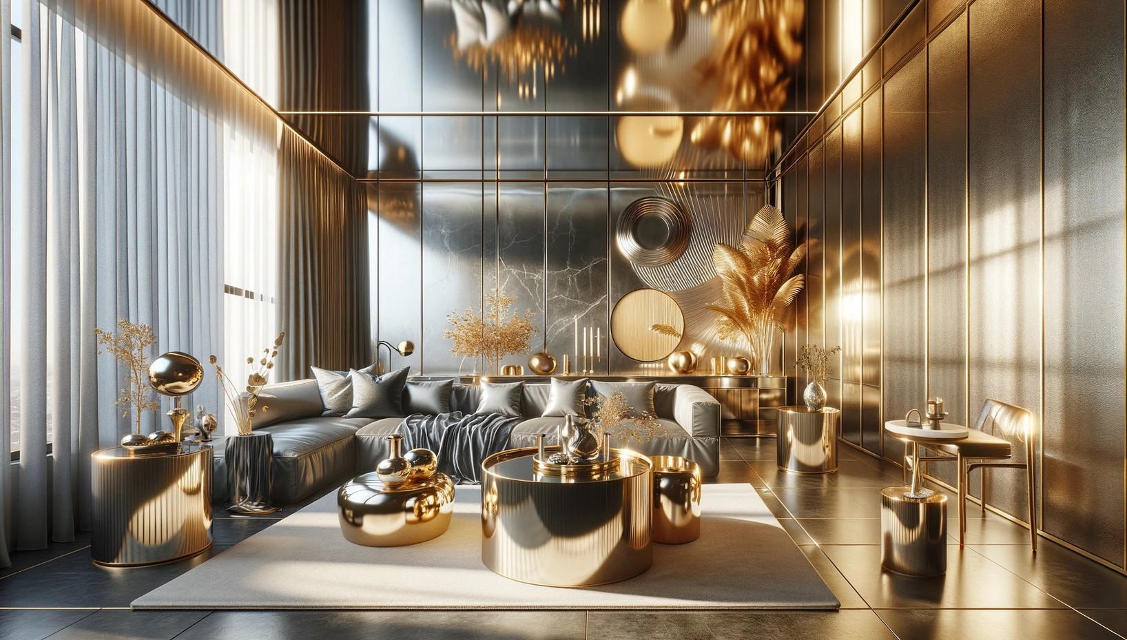 • Металлы. Золото, бронза, хром – их использование создает ощущение богатства и блеска. Металлические элементы могут быть полированными, матовыми или с патиной.