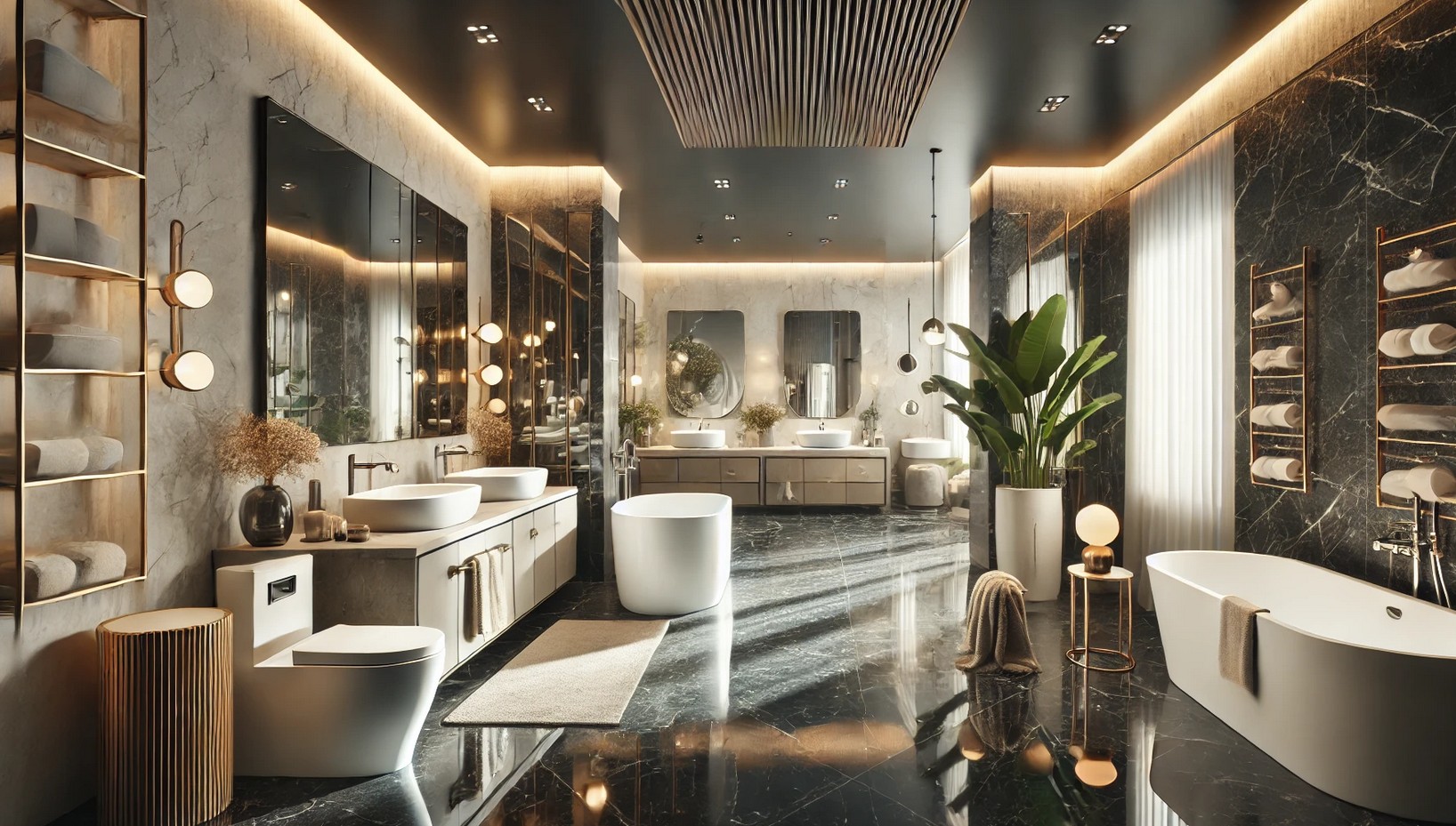Как выбрать освещение для ванной комнаты, соблюдая Арт-Деко и акцентируя внимание на деталях. В ванной можно установить бра с металлическими элементами и использовать зеркала с подсветкой.