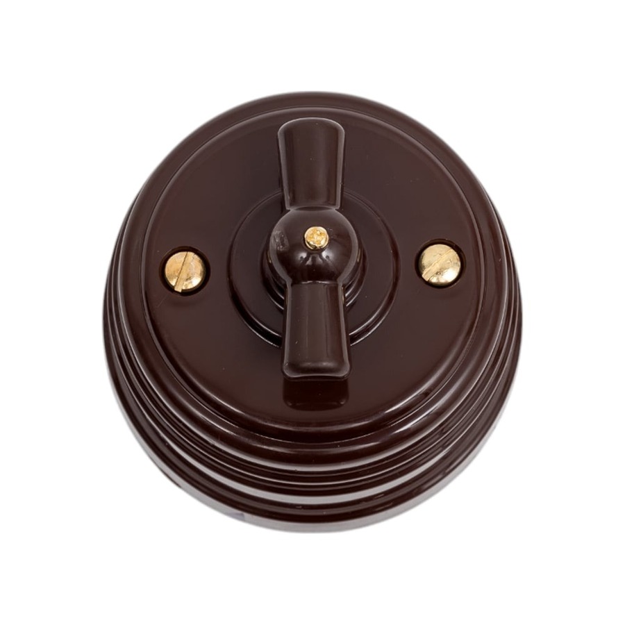 Не слишком часто встречающийся тип прибора, используемый, как правило, в классических и европейских интерьерах. Конструкция такого выключателя имеет рычажок, поворот которого замыкает и размыкает электрическую сеть.