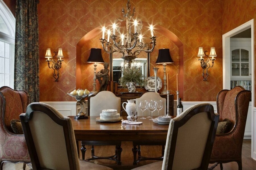 В классической обстановке желательно использовать температуру ламп от 4000 до 3000 Кельвинов, а акцентная подсветка может быть еще более теплой, если хочется создать эффект пламени свечи.