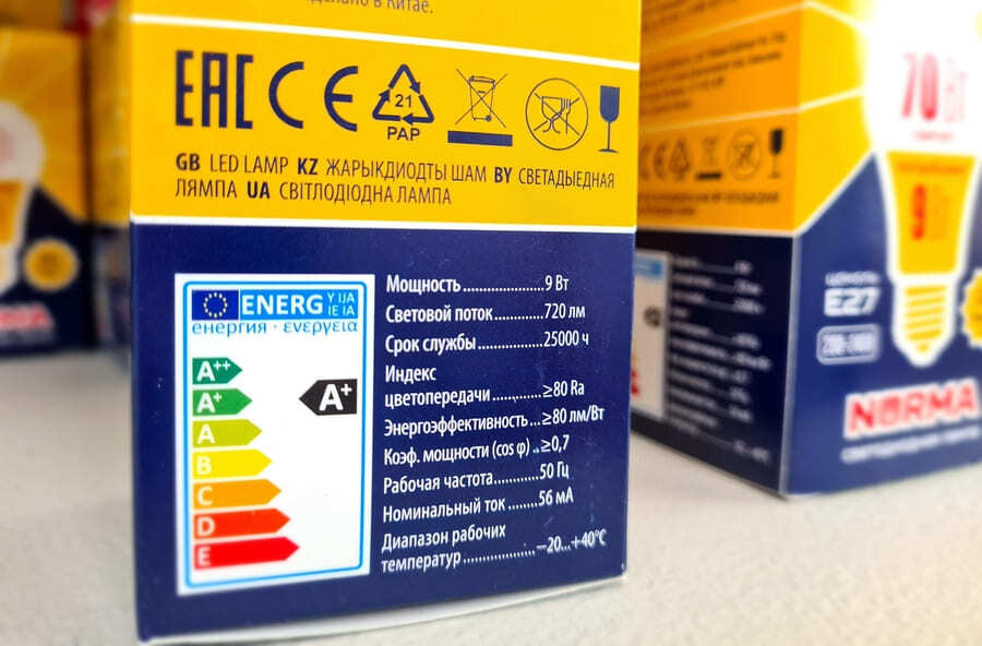На упаковке каждой лампы нанесен показатель цветопередачи. Оптимальной считается индекс от 80 до 90.