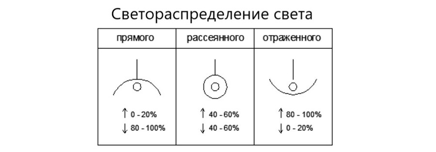 Процент направленного света у светильника может составлять от 40 до 60%. Остальной поток отражается от поверхностей в комнате, создавая равномерное освещение в помещении.