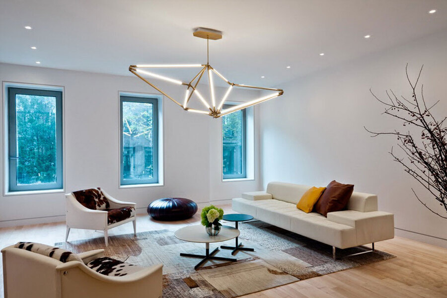 Специалисты в области оформления интерьеров зачастую прибегают именно к этой схеме размещения потолочных светильников, так как они наполняют комнаты объемом и отличаются не только функциональностью, но и бытовым комфортом.