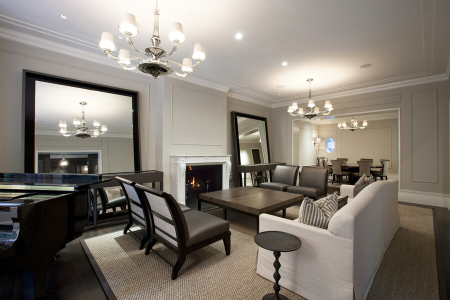 Основное освещение незаменимо в просторных гостиных в классическом и неоклассическом стиле. Оно привносит атмосферу роскоши и элегантности.