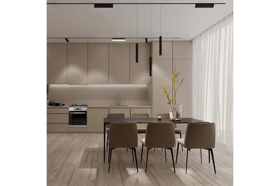 Погружаемый тип шинопровода выглядит ультра современно и подходит для пространств различного назначения: гостиных, кухонь, рабочих кабинетов, бутиков и кафе.