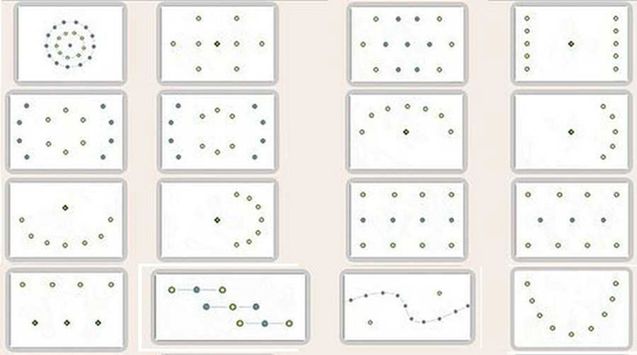 По мнению дизайнеров светильники на потолок можно расположить, использовав несколько современных и востребованных схем: