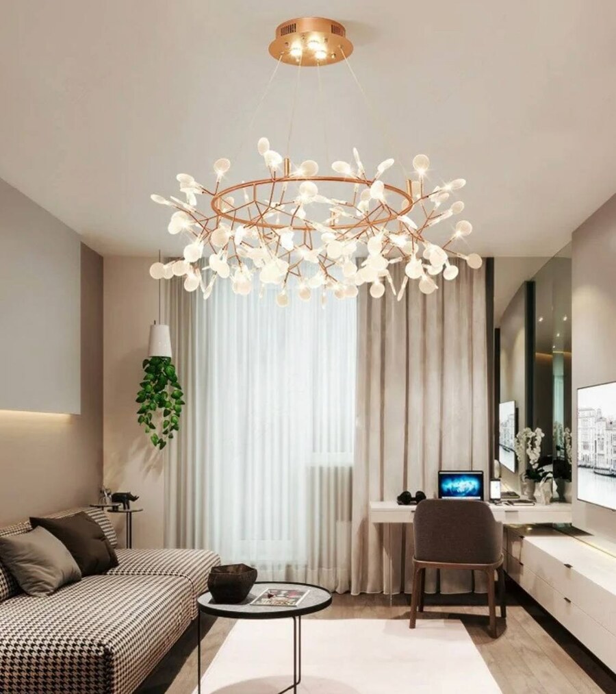 Лаконичные варианты люстр-молекул наполнят скандинавский или минималистичный интерьер объемом.