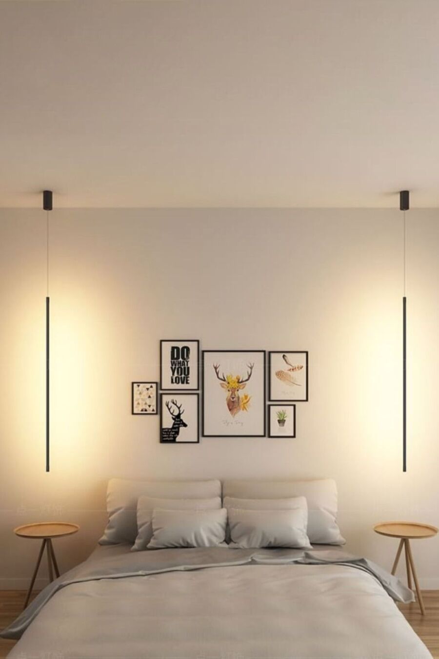 Иногда подвесными моделями заменяют прикроватные лампы по краям изголовья.