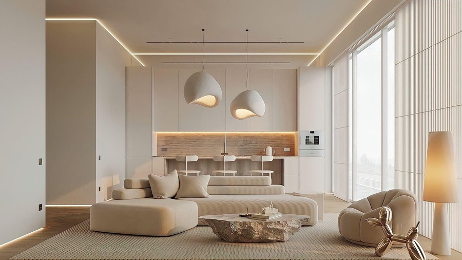 Сочетает максимум дневного света и мягкость искусственного. Оба типа дополняют друг друга, создавая гармонию и уют в доме.