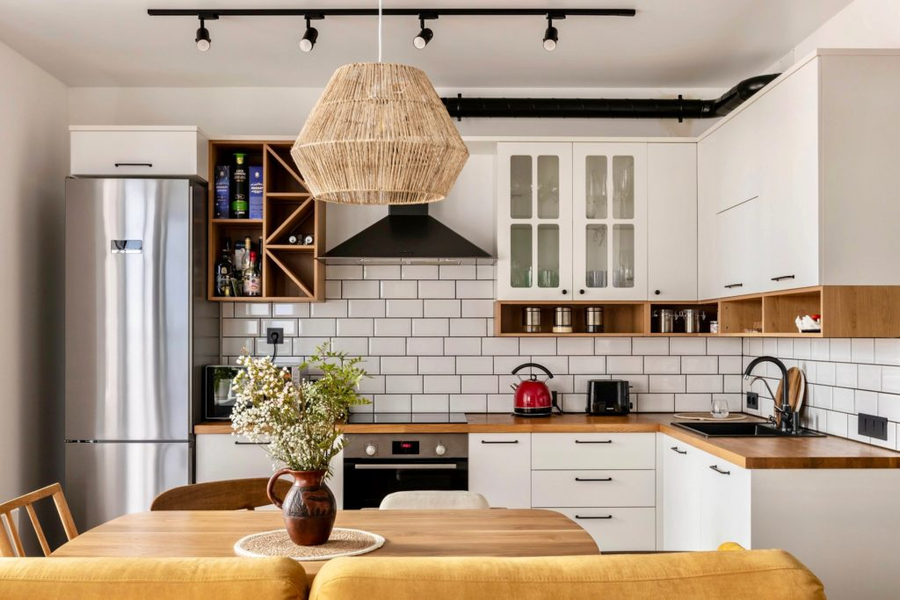 Кухонное пространство — самое функциональное в доме. Светильники в скандинавском стиле здесь подбираются с таким же ориентиром.