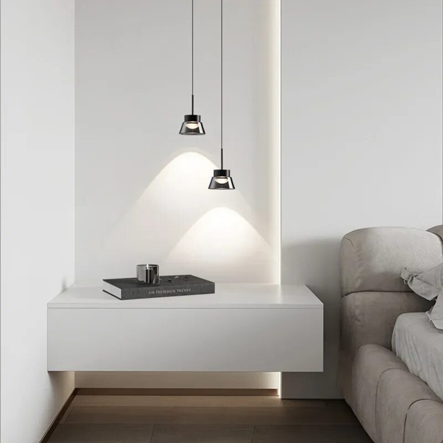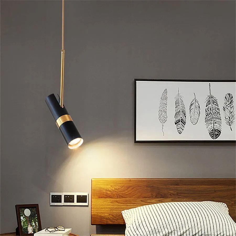 Если требуется прицельная световая точка, например, в качестве прикроватного света, установите один подвесной светильник над тумбочкой.