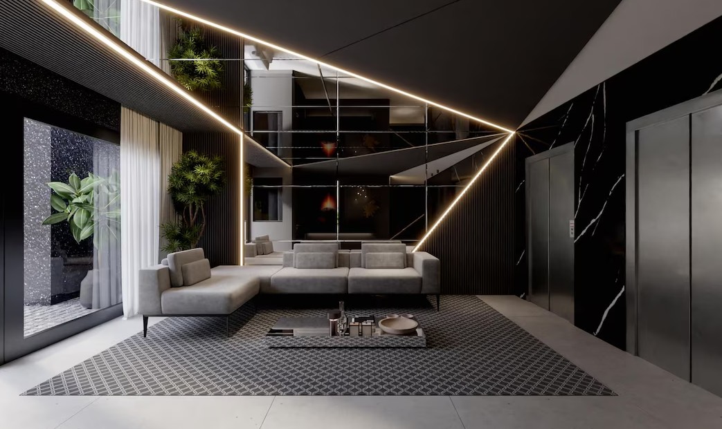 • Подсветка пола. Создает эффектный визуальный акцент и облегчает передвижение в темное время суток, особенно важно для семей с маленькими детьми или пожилыми людьми.