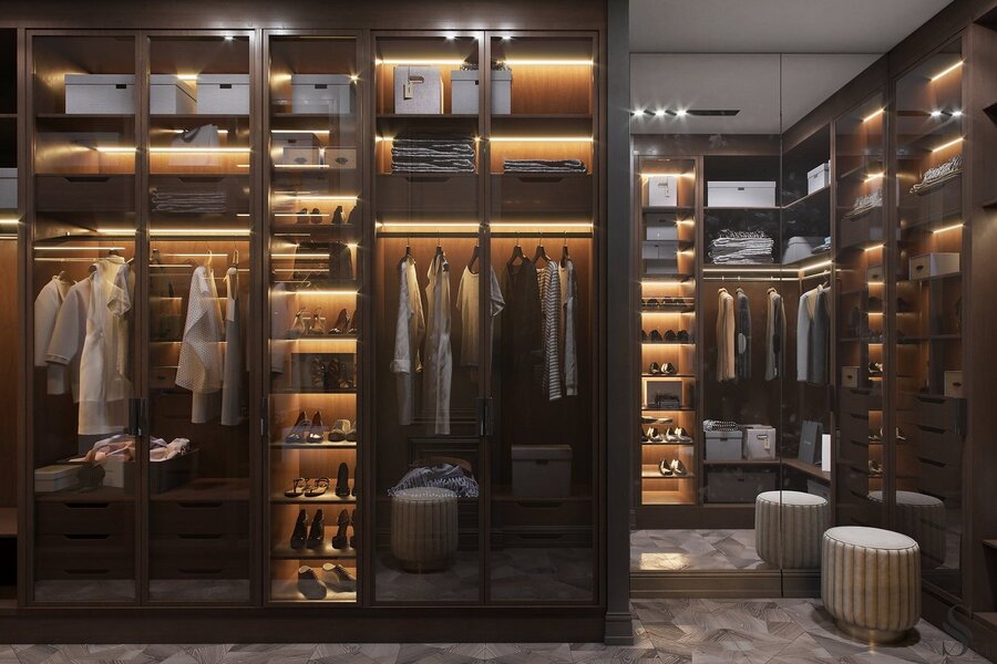 Например, при входе в квартиру автоматически включается свет в прихожей, при наступлении сумерек задействуются LED-ленты на шторах, открытие двери в гардеробную является сигналом для работы подсветки в шкафах с одеждой.