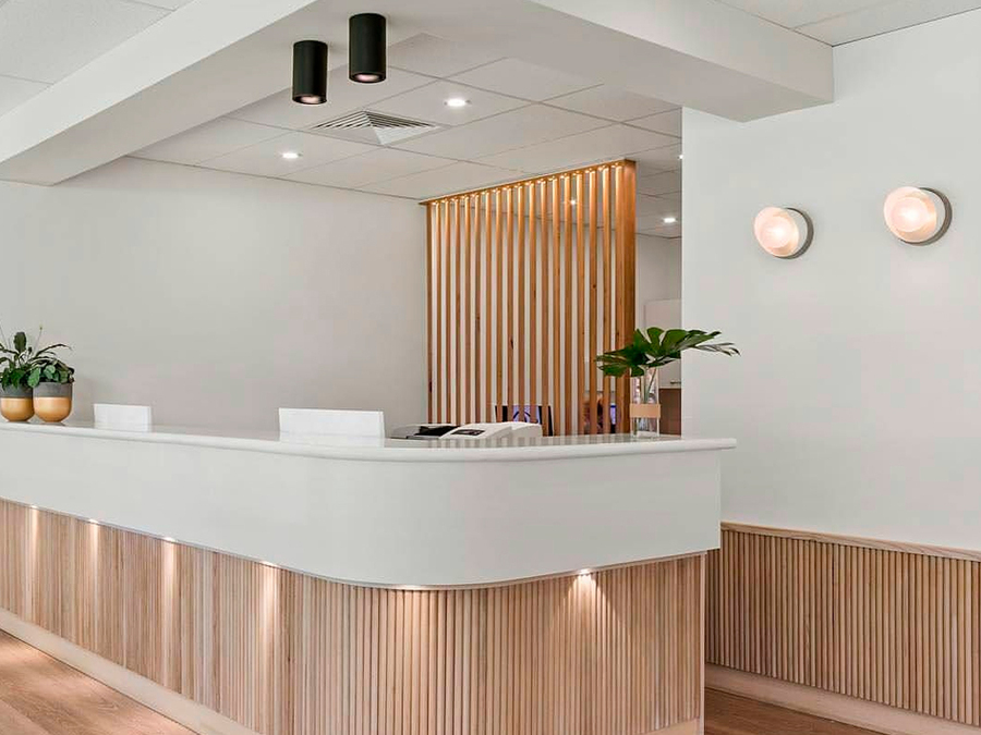 Оформление холла компании с помощью светильников с цоколем GU10