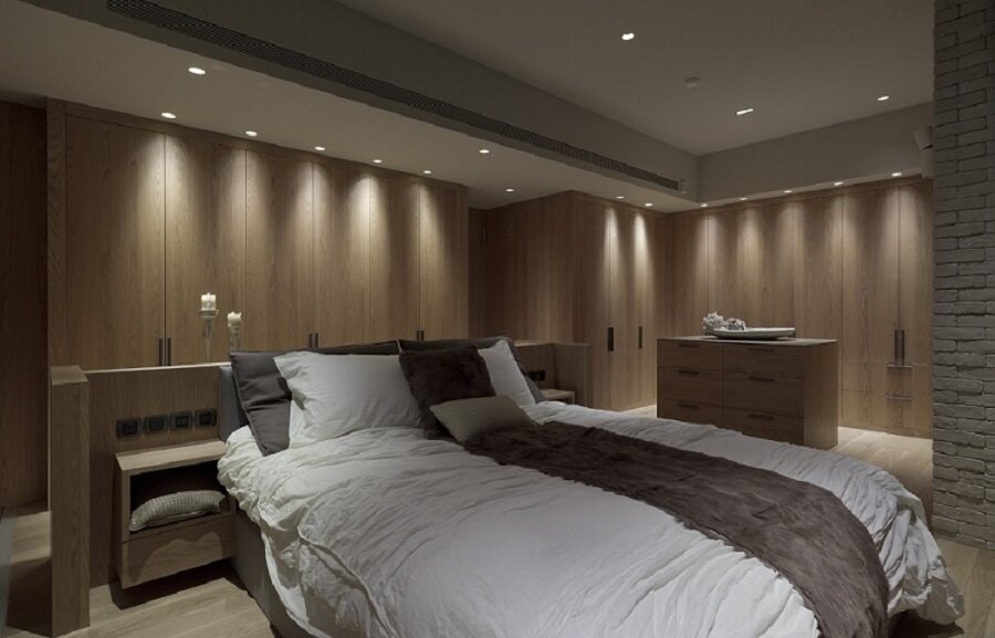 Пример активного использования точечного света в спальне