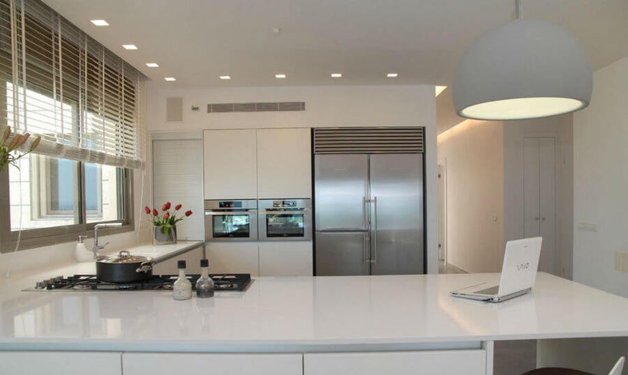 На кухнях часто используется встроенная подсветка гарнитура, организованная с помощью встроенных светильников.