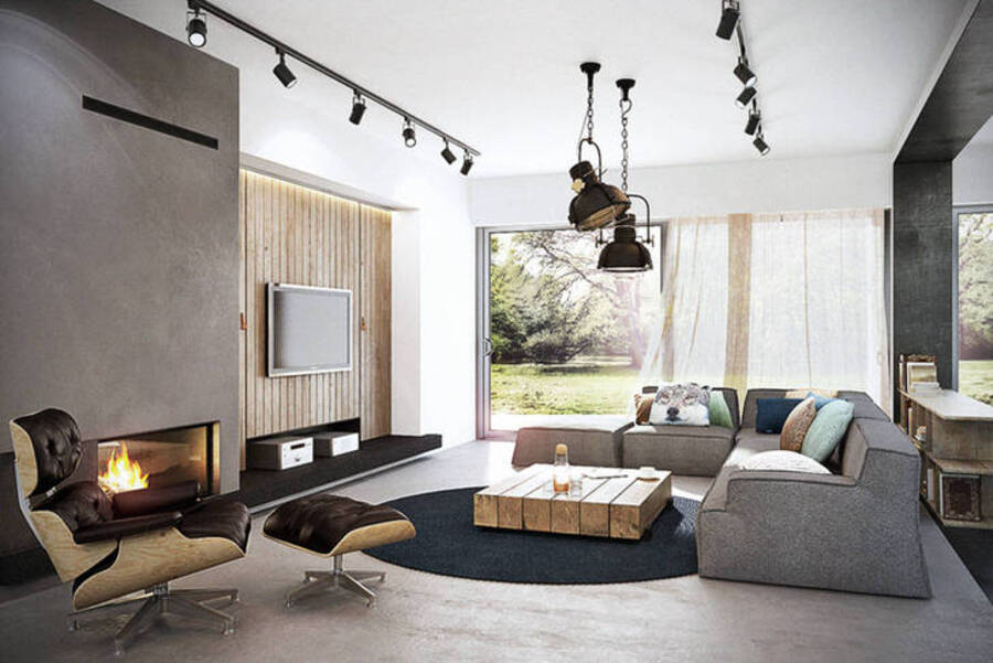 Трековый свет в гостиной, коридоре или кабинете оснащается механизмами с простой и быстрой заменой лампочек.