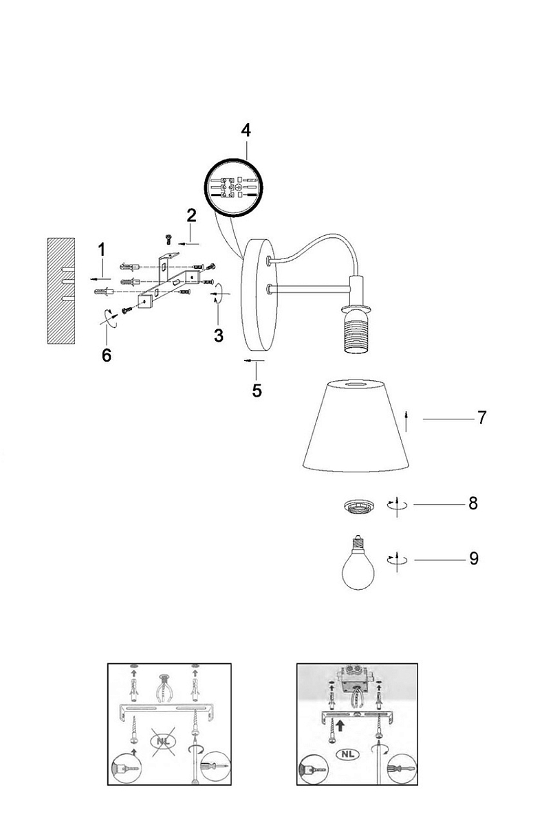 Направление абажуров/плафонов Вниз