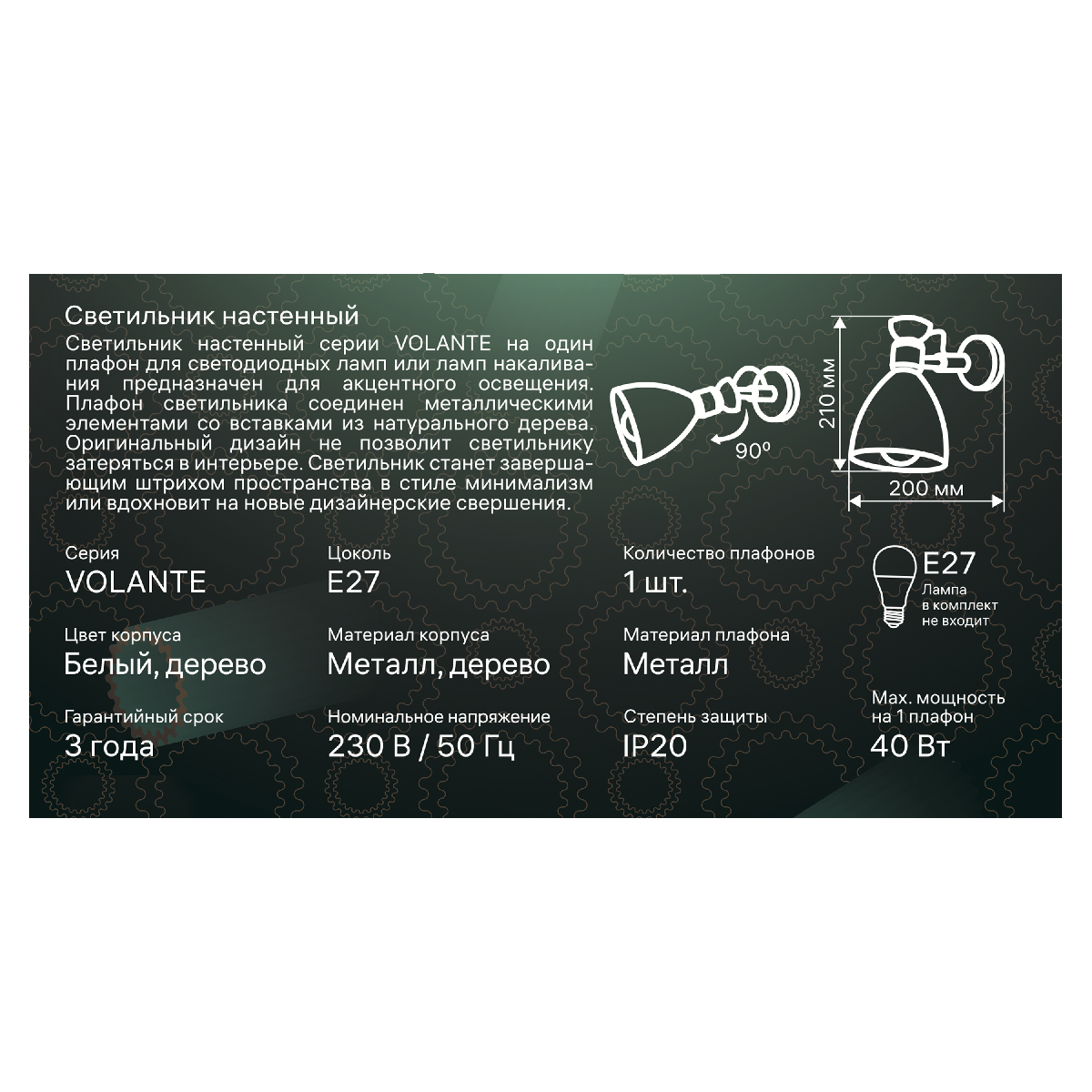 Мощность лампы, W 40