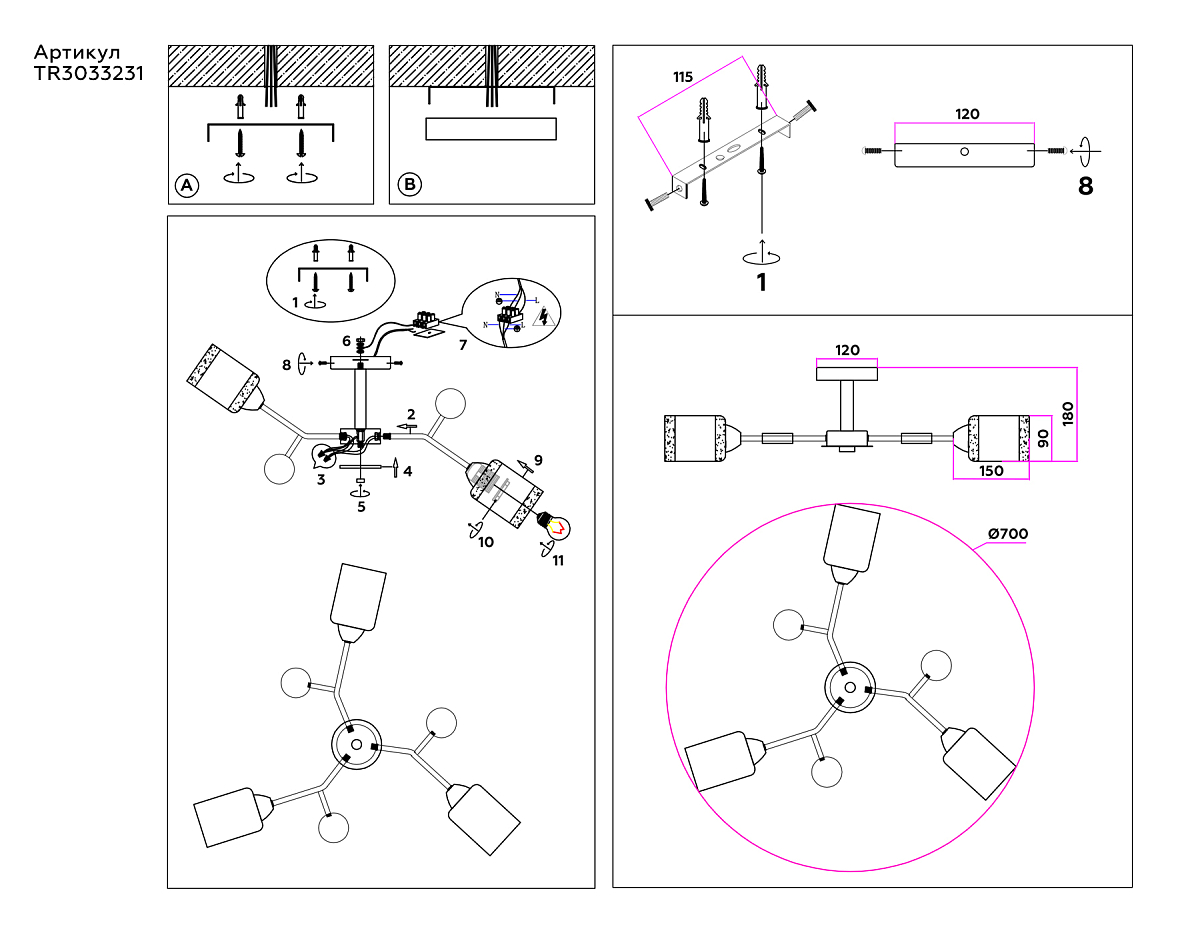 | Расположение | На потолок |