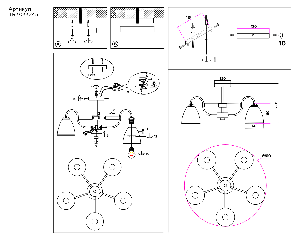 | Расположение | На потолок |