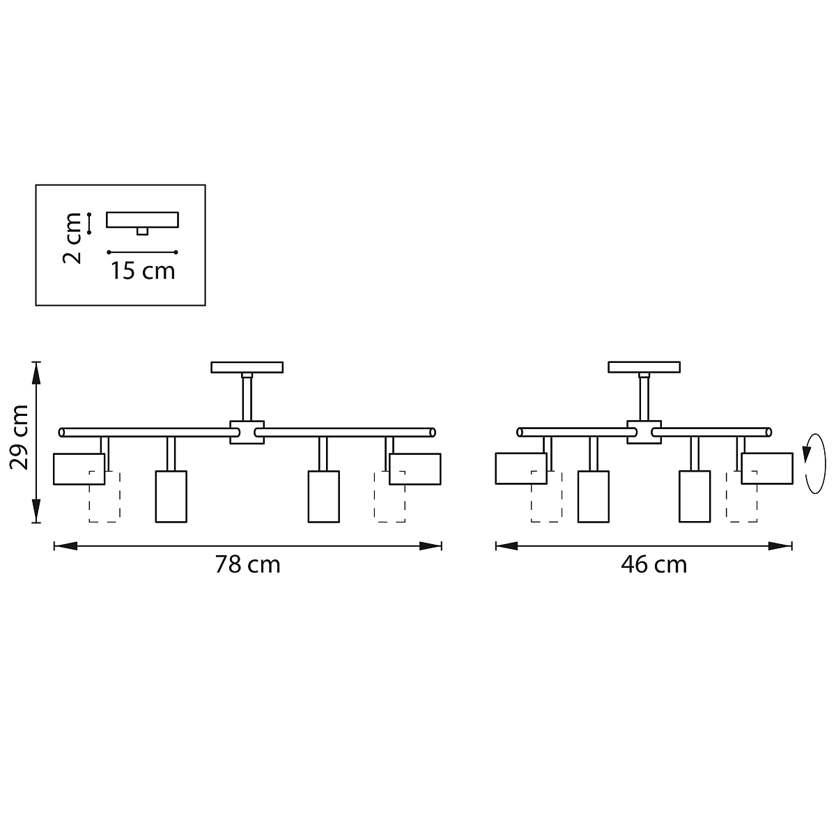 Направление абажуров/плафонов Поворотное