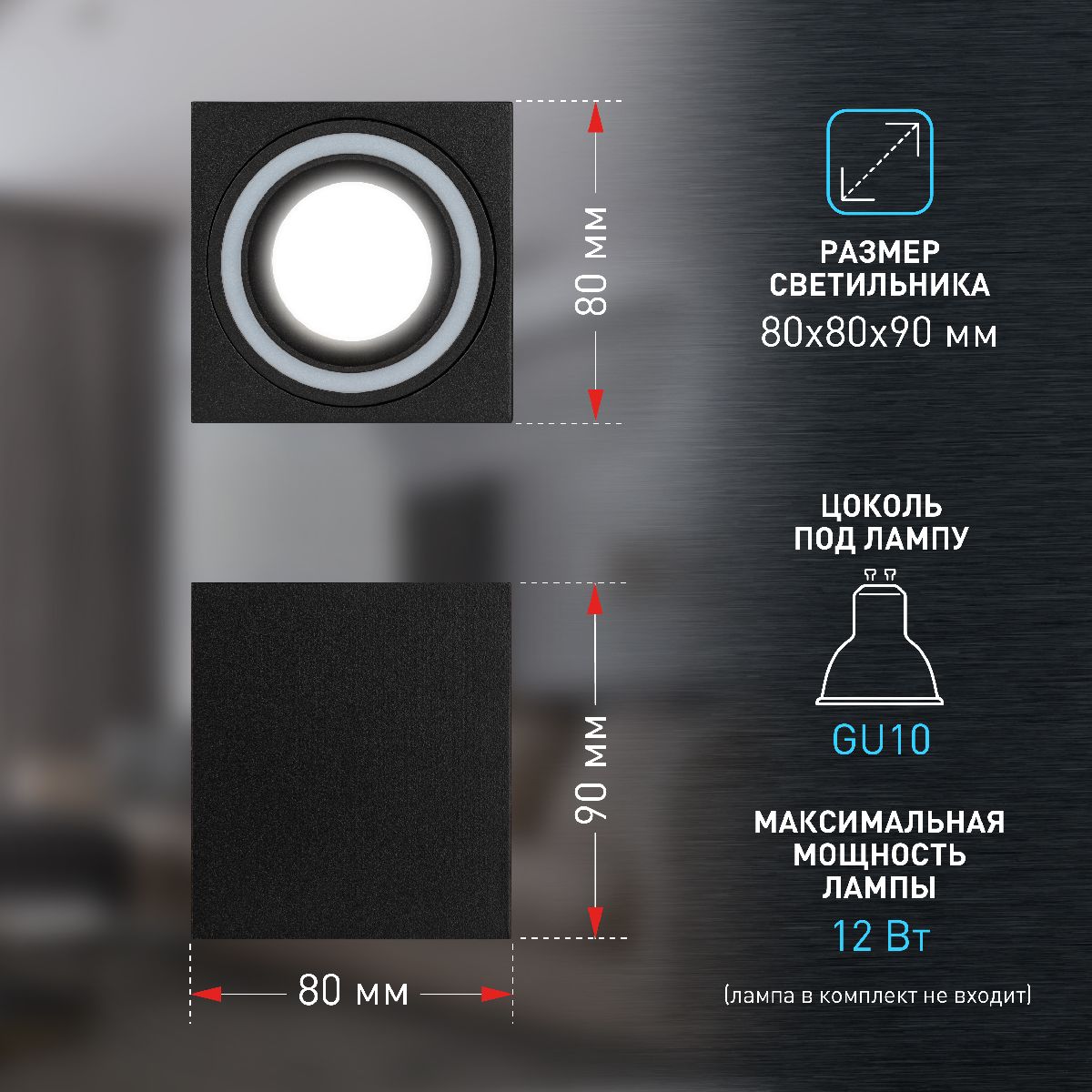 Мощность лампы, W 12