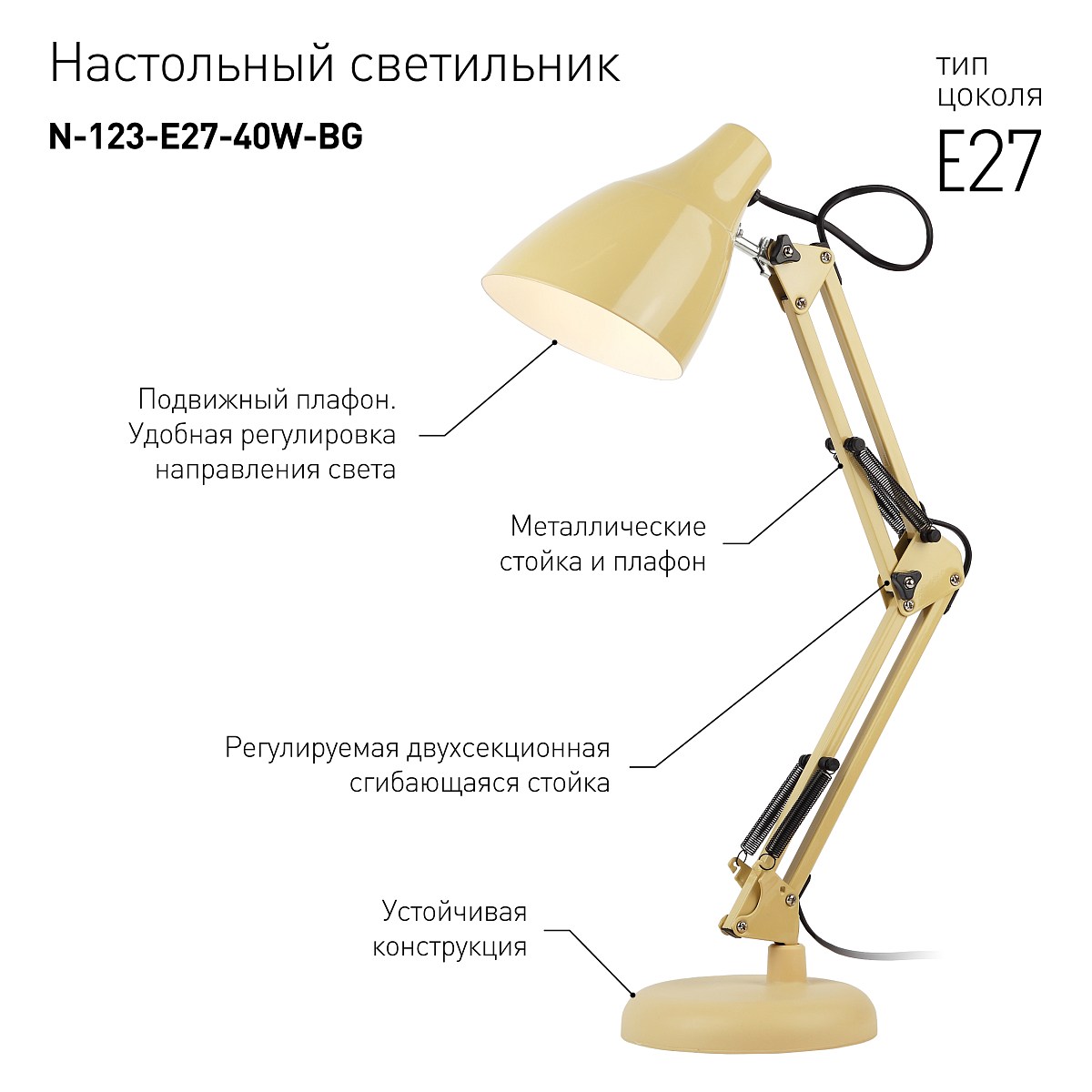 Настольная лампа ЭРА N-123-Е27-40W-BG Б0047198