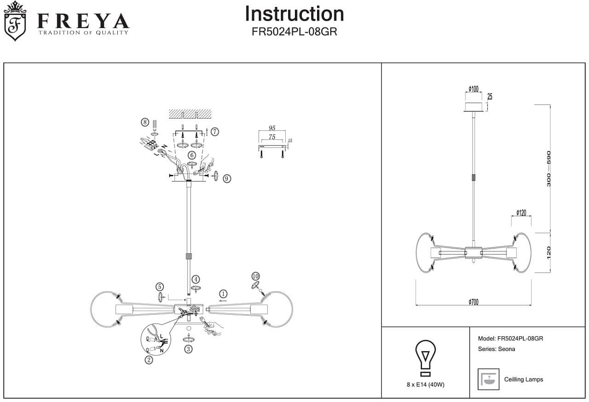 | Мощность лампы, W | 40 |