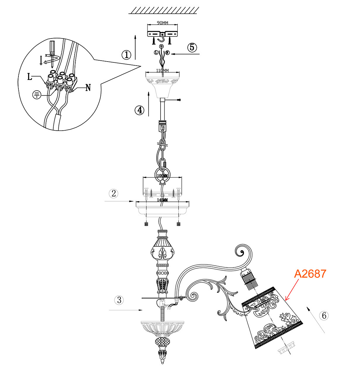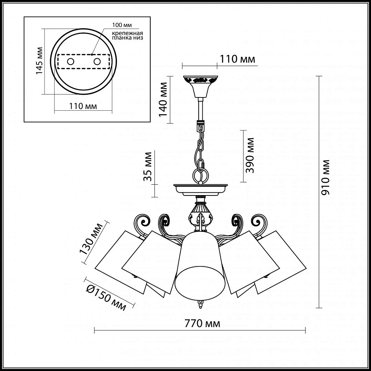 | Направление абажуров/плафонов | Вниз |