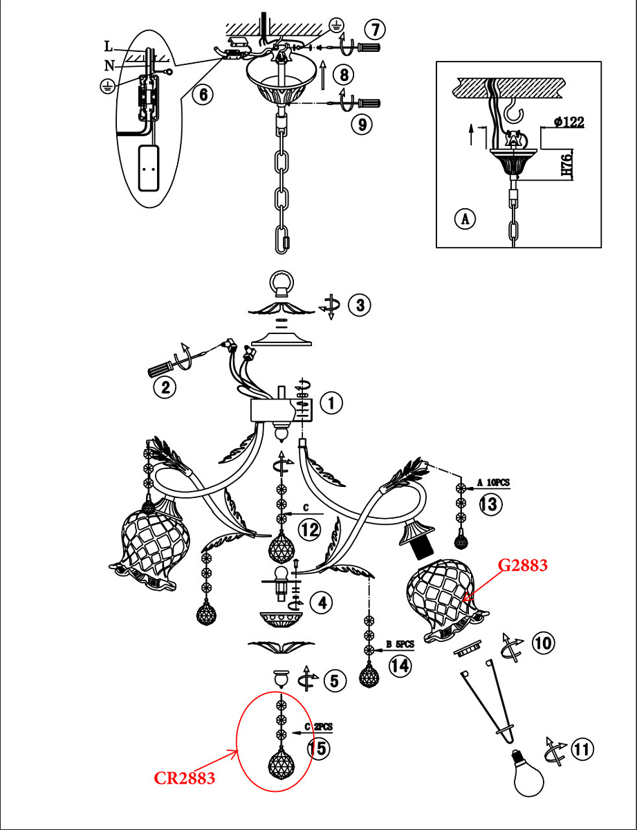 | Направление абажуров/плафонов | Вниз |
