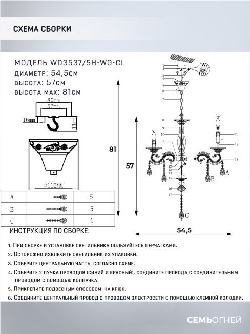 | Количество плафонов/абажуров | 5 |