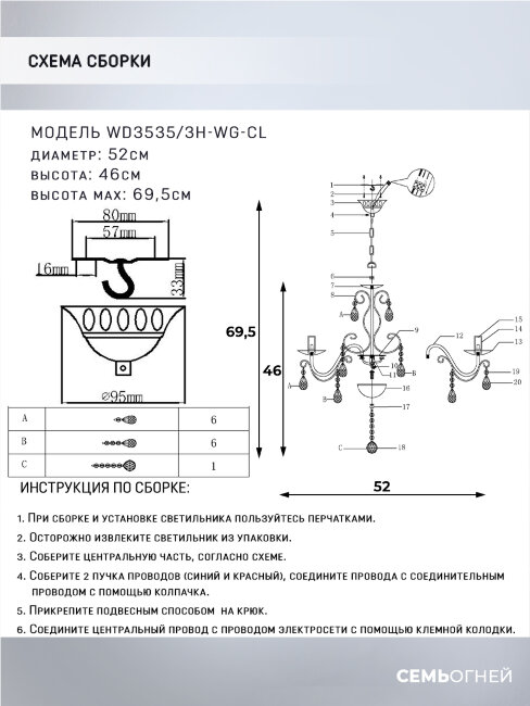 | Количество плафонов/абажуров | 3 |