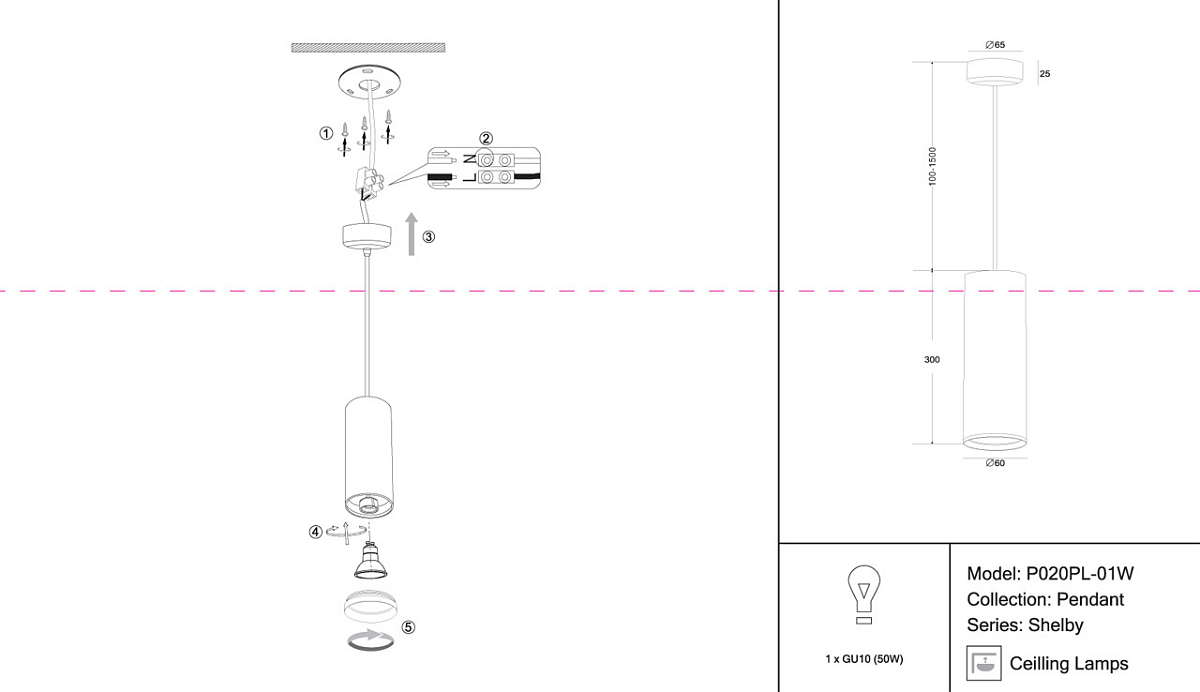 Подвесной светильник Maytoni Shelby P020PL-01W