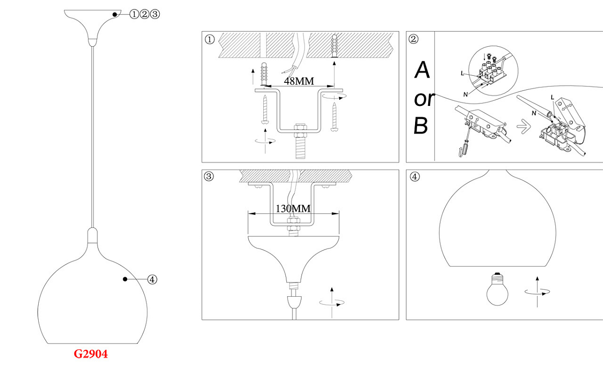 | Направление абажуров/плафонов | Вниз |