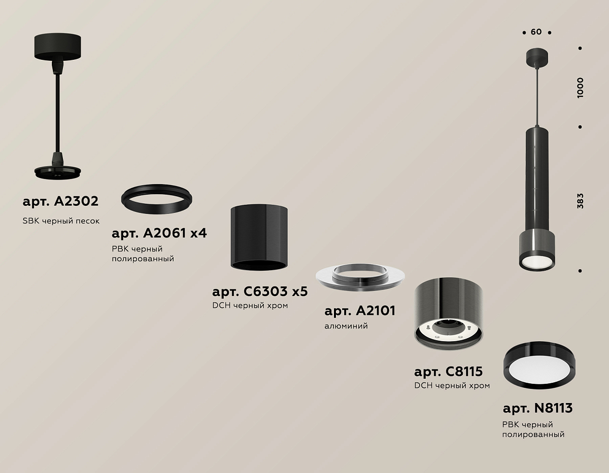 Подвесной светильник Ambrella Light Techno Spot XP8115001 (A2302, A2061x4, C6303x5, A2101, C8115, N8113)