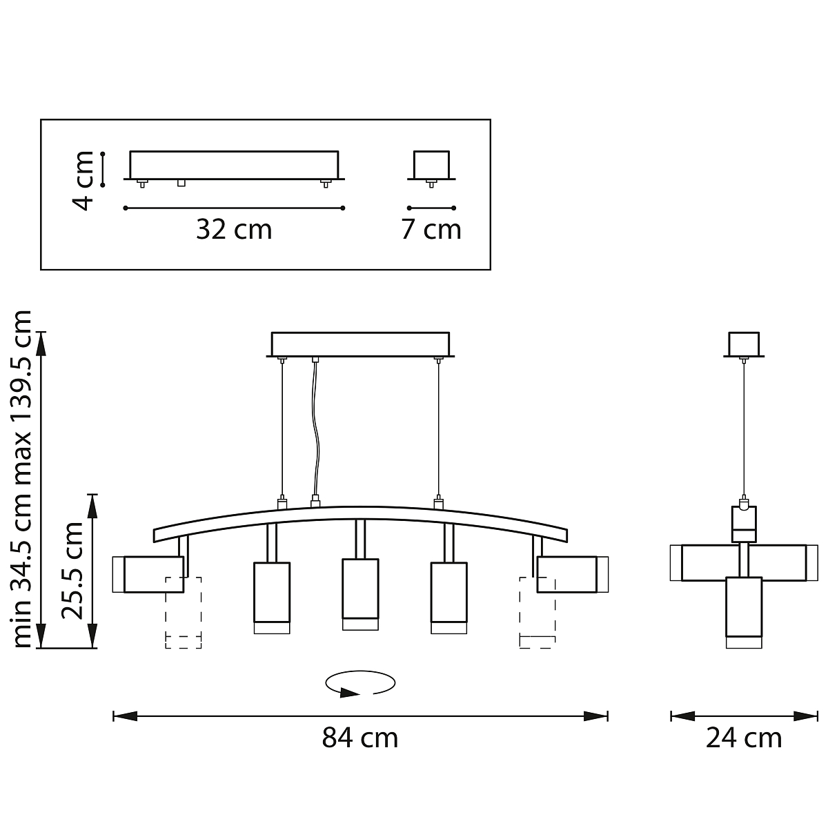 Направление абажуров/плафонов Поворотное