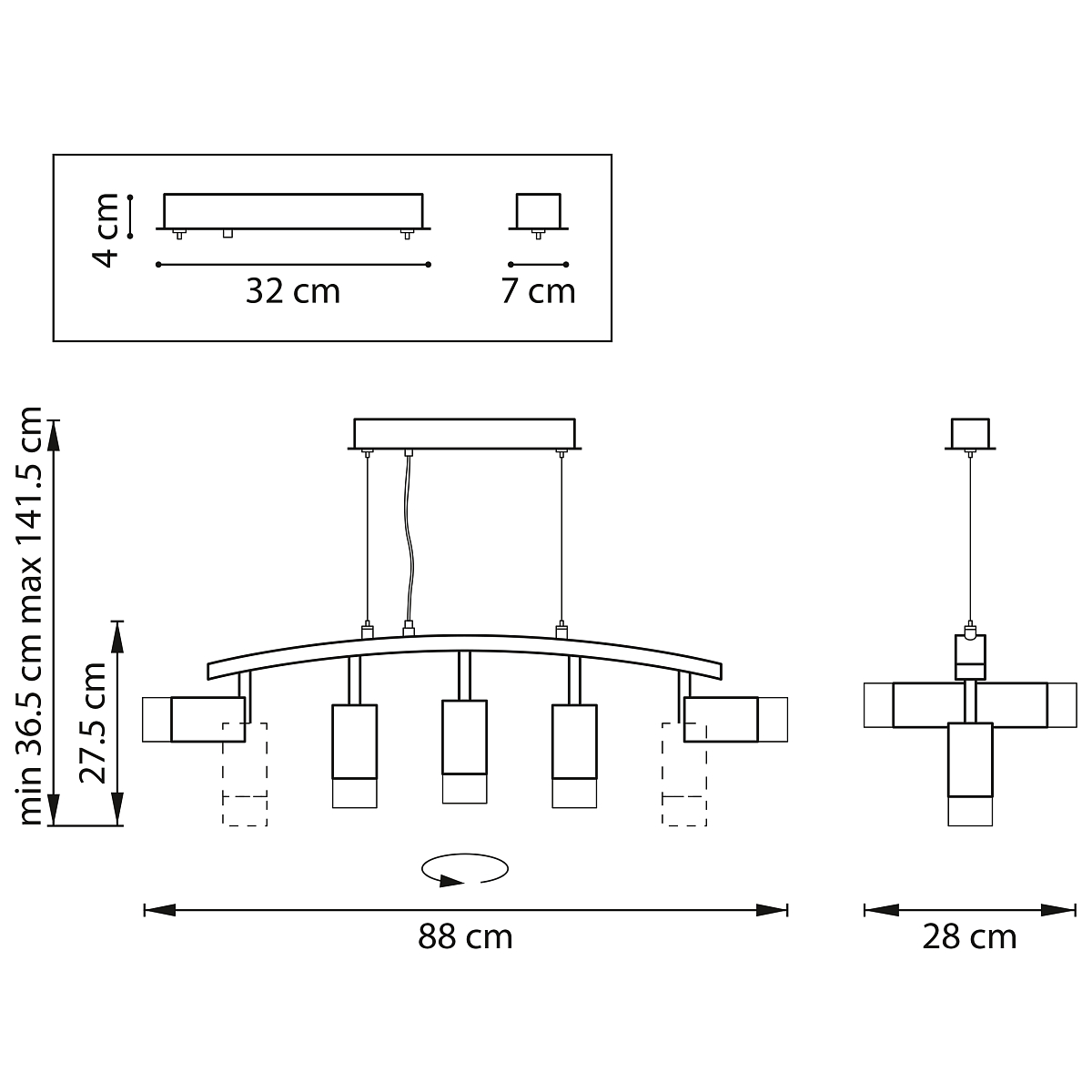 Направление абажуров/плафонов Поворотное
