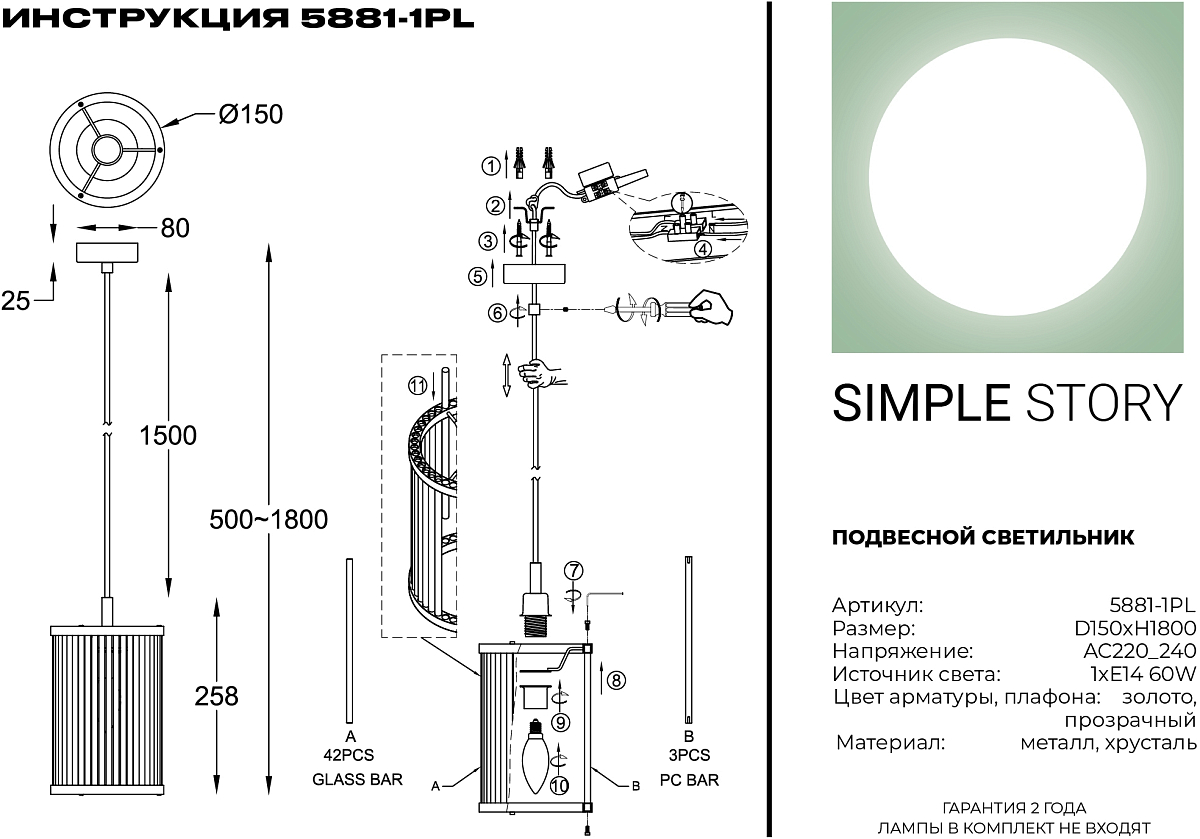 | Количество плафонов/абажуров | 1 |