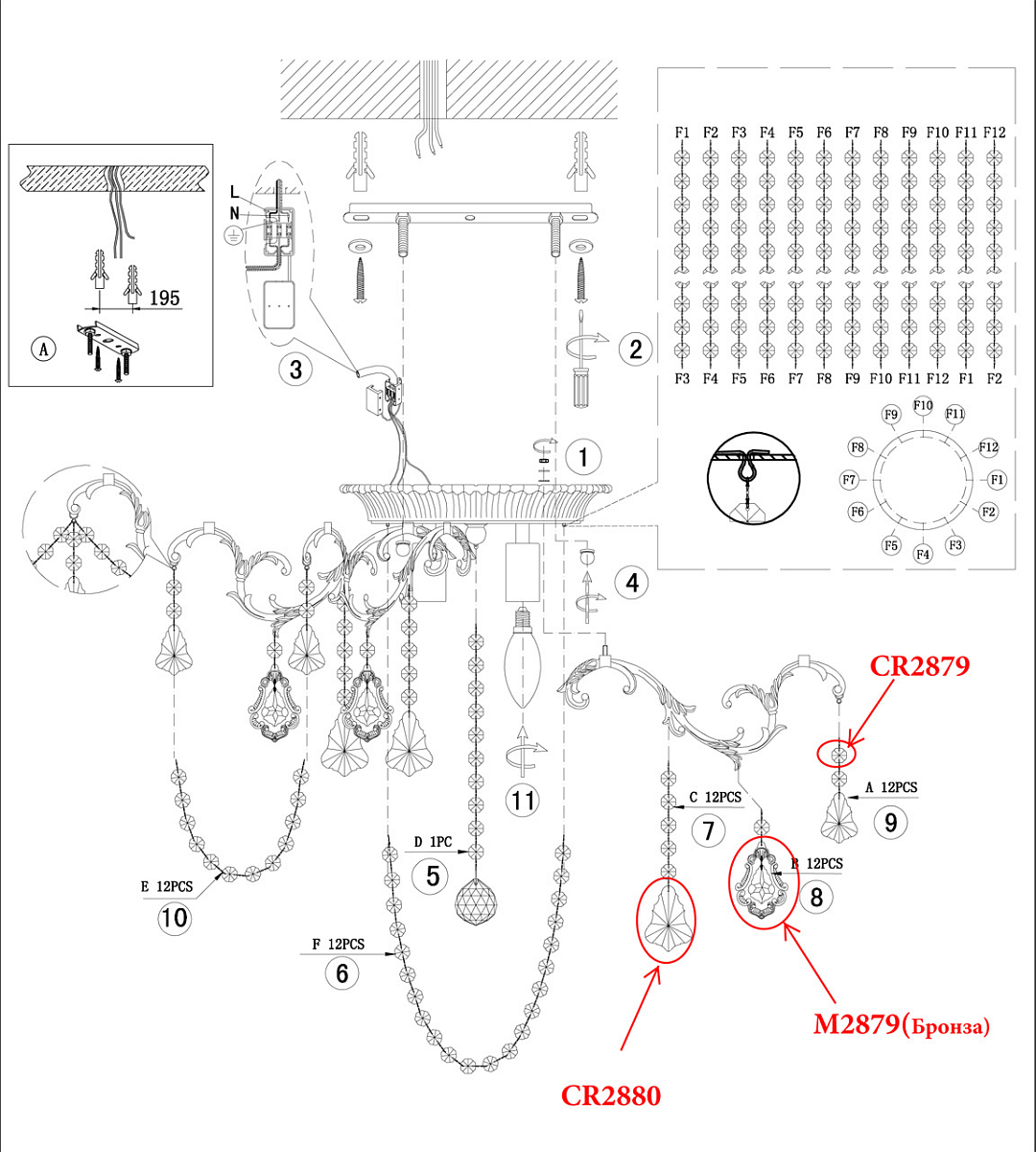 | Направление абажуров/плафонов | Вниз |