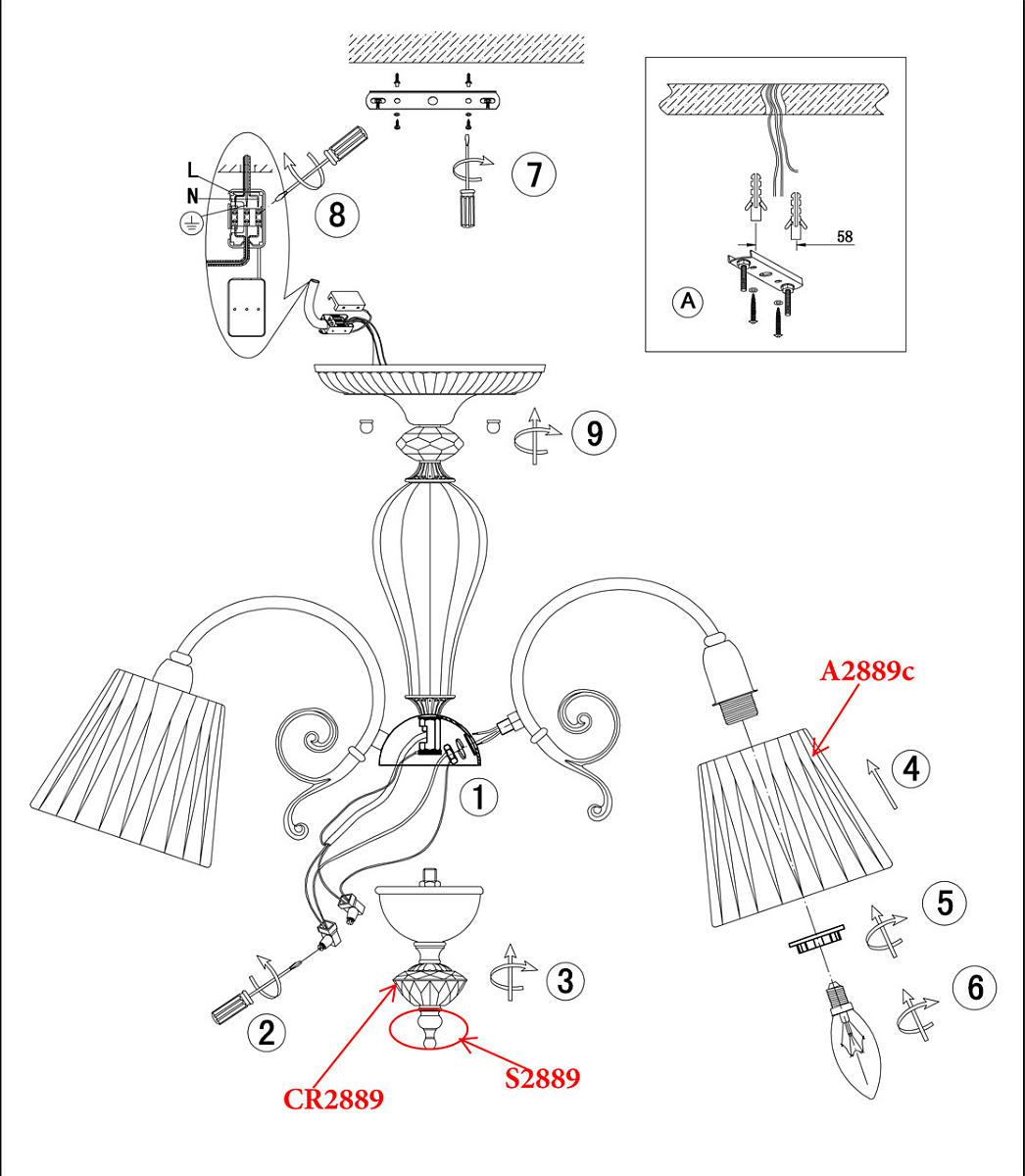 | Направление абажуров/плафонов | Вниз |