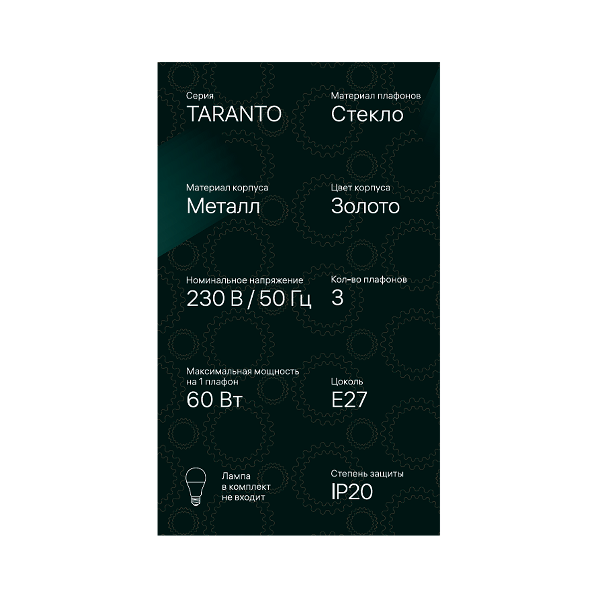 | Количество ламп | 3 |