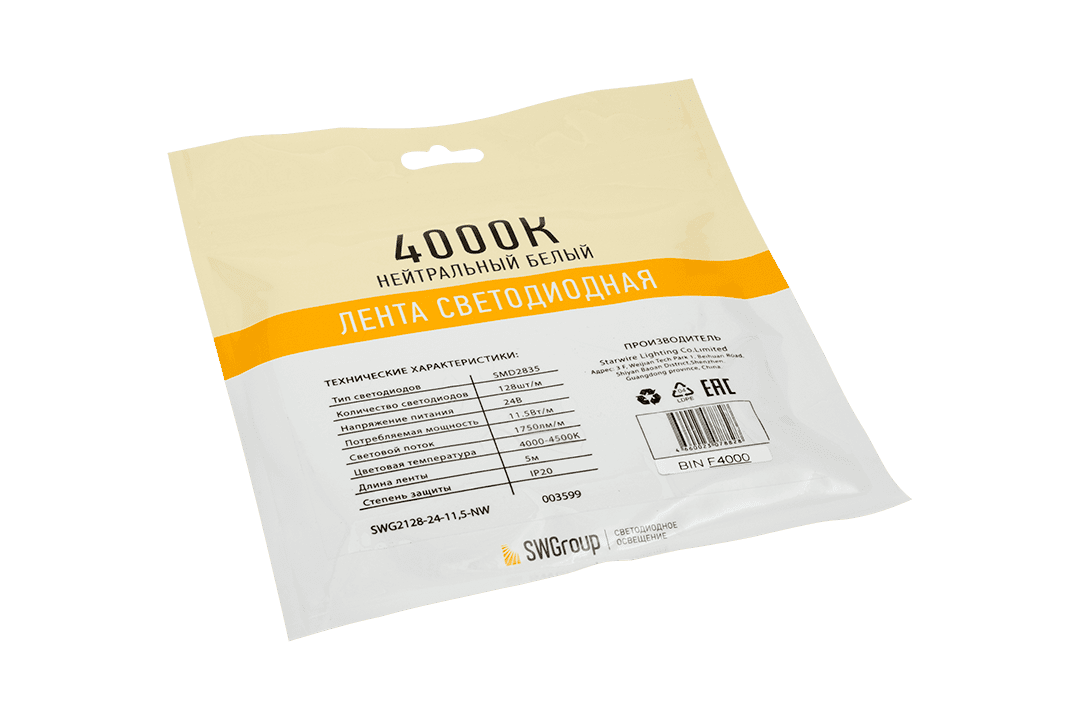 | Цветовая температура | 4000/4500 |
