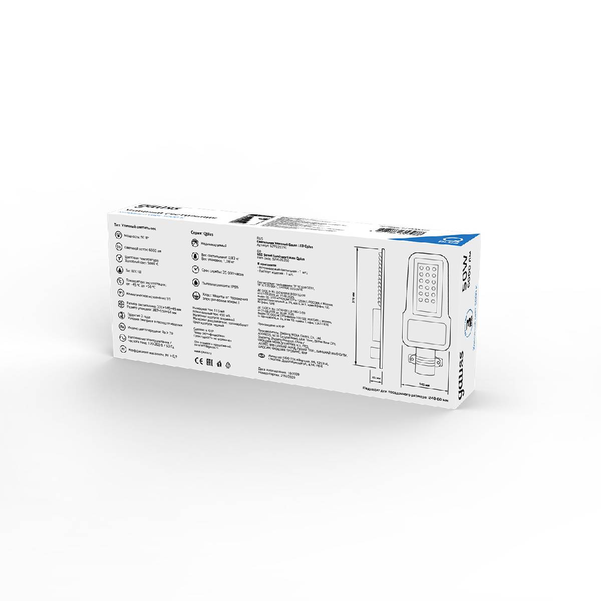 Уличный светодиодный консольный светильник Gauss Qplus 629535350