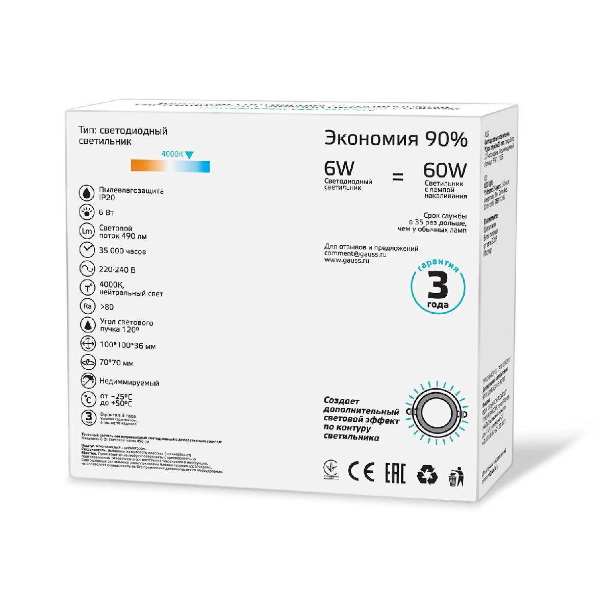 | Цвет свечения | Нейтральный белый |